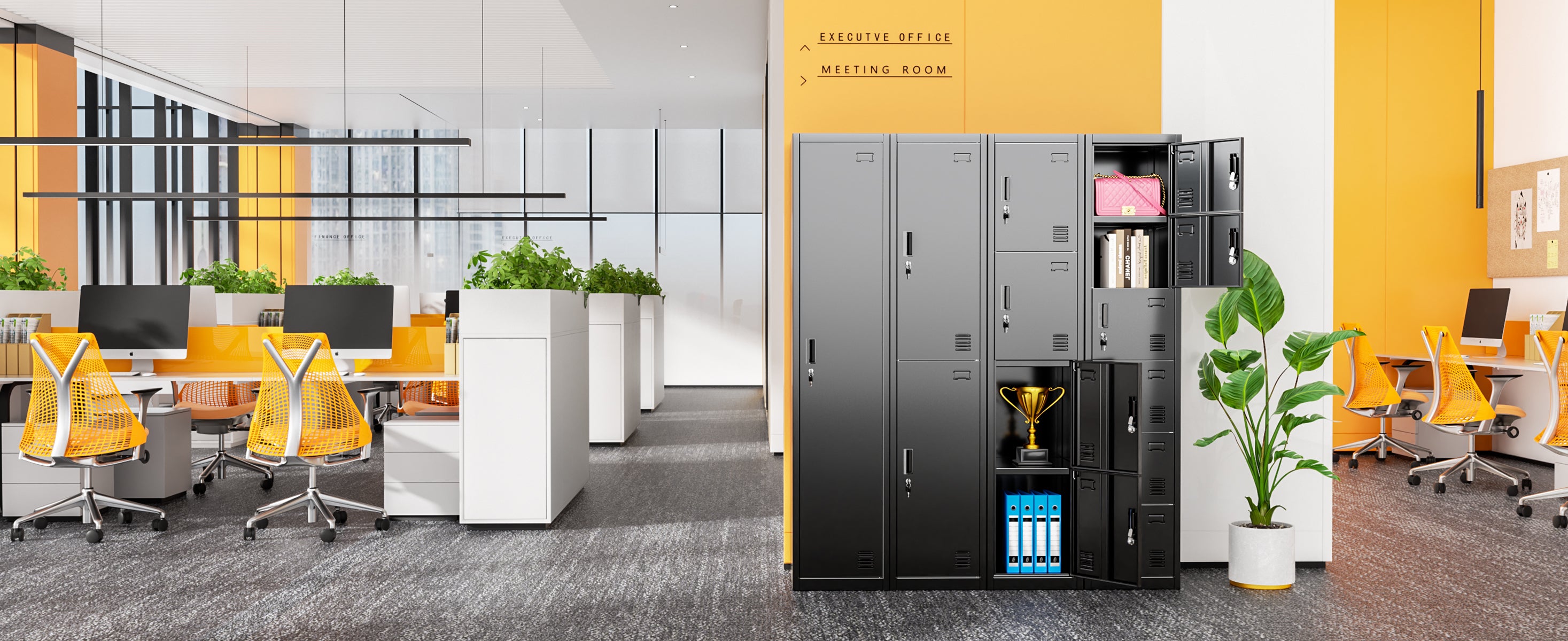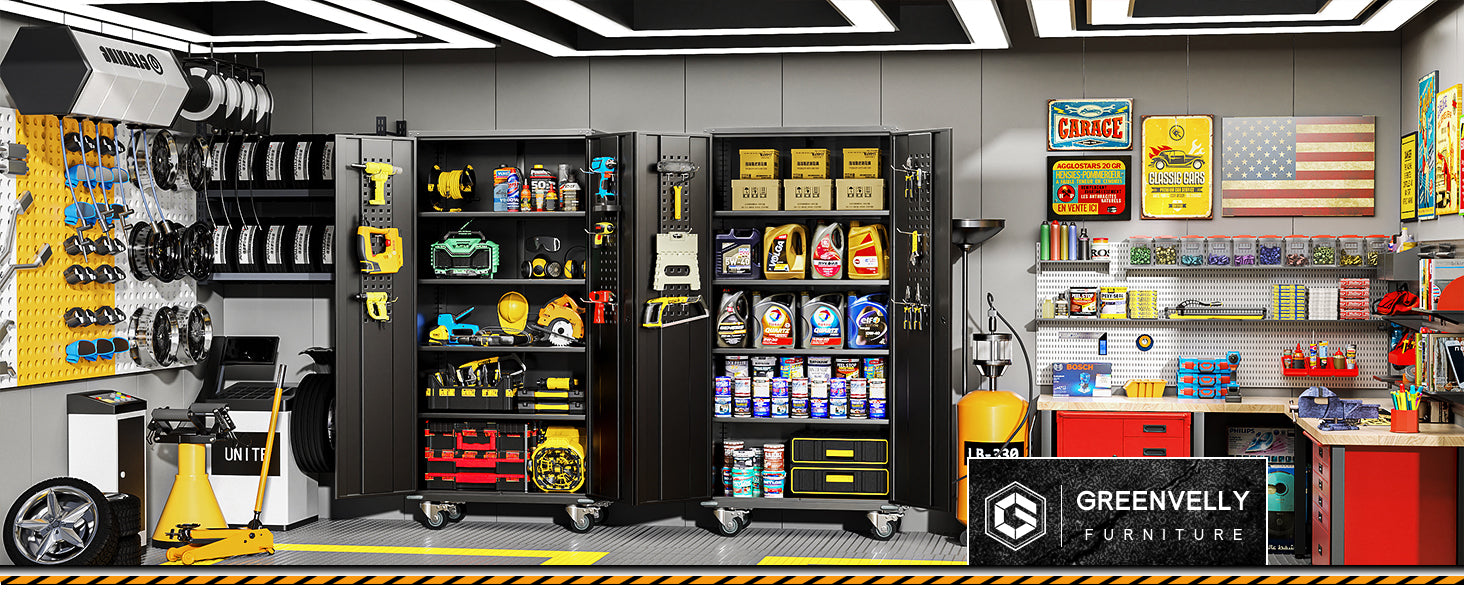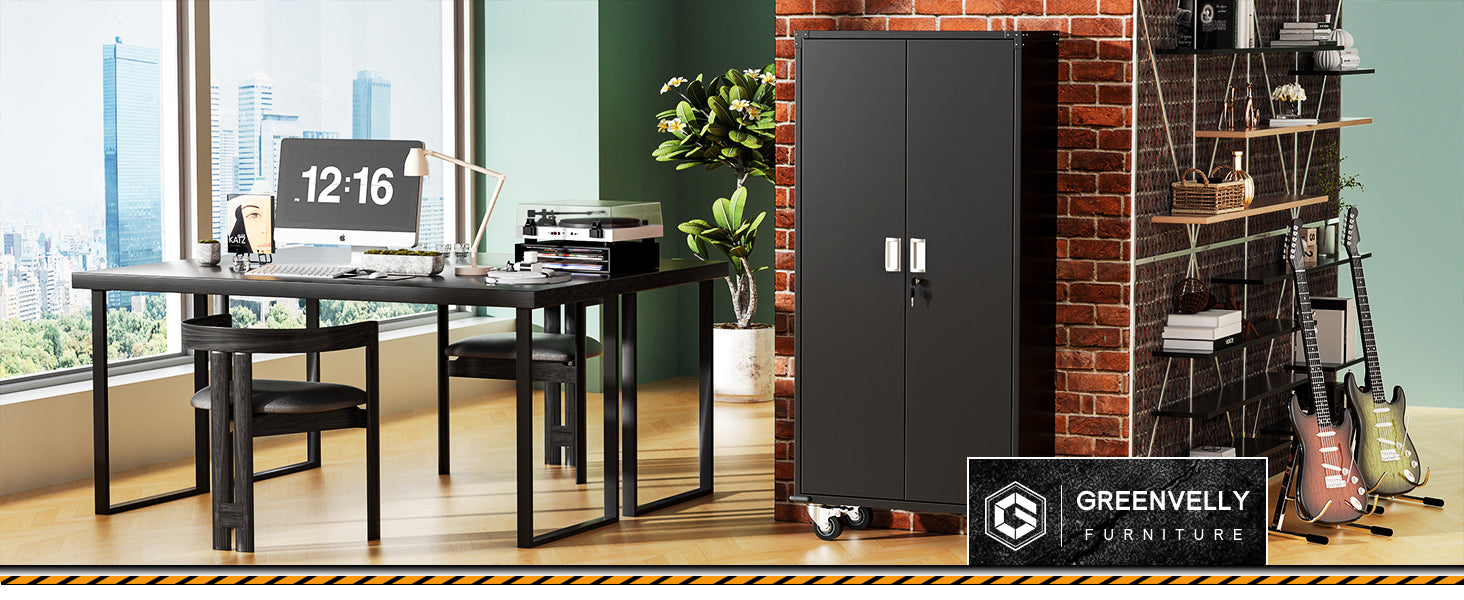 Greenvelly 71” Black Metal Garage Storage Cabinet with Doors and 4 Adjustable Shelves